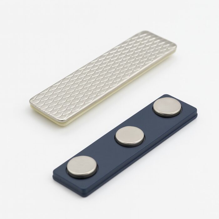 El Imán Broche Magnético Triple es la opción ideal para sujetar placas de identificación, pines corporativos o credenciales sin dañar la ropa. Su diseño moderno y funcional con tres potentes imanes garantiza una sujeción firme, cómoda y sin perforaciones, perfecto para entornos ejecutivos, institucionales o de atención al cliente.